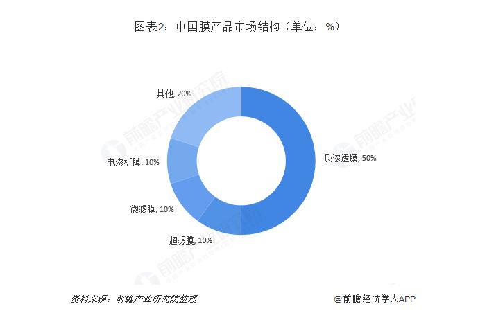 产品的趋势,在世界上各种各样的膜组件,膜的反渗透膜占45%市场,主要用于海水淡化和超纯水生产的海水,和超滤和纳滤的组合占约20%,主要用于污水、废水处理和重用、水净化、海水淡化预处理。在未来,随着膜产品和技术的多样化,膜产品的应用将会越来越广泛。